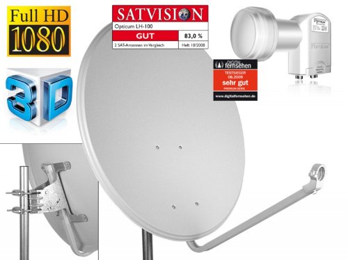 100cm SAT ANTENNE + TWIN 0,1dB LNB FULLHD OPTICUM SCHÜSSEL Hellgrau