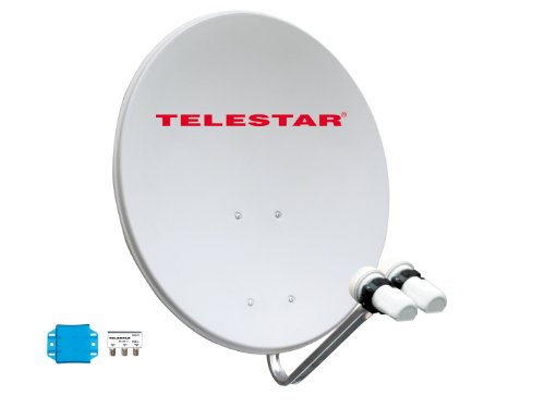 Außenanlage zur gleichzeitigen Versorgung eines Teilnehmers mit digitalen Satellitensignalen zweier Satellitenpositionen (ASTRA und EUTELSAT), bestehend aus einem 80cm-Offsetspiegel (Material Aluminium) mit ALURAPID Schnellmontagemasthalterung, zwei digitalen SKYSINGLE LNBs sowie einem DiSEqCTM Positionsumschalter 2/1.Diese Außenanlage eignet sich zum Anschluss eines analogen oder digitalen Satellitenreceivers mit DiSEqCTM-Schaltung.