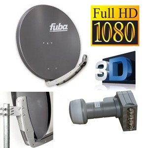 Antenne Fuba 85x85 cm Alu Anthrazit DAA 850 A + Fuba Quad LNB DEK 416