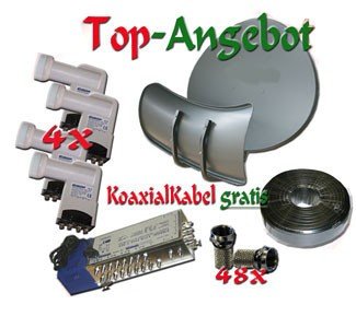 Antenne Wave T90 Toroidal Wavefrontier + 17/8 Multischalter + 4x LNB 0,1 + 100m 120dB Koaxkabel + 48x F-Stecker