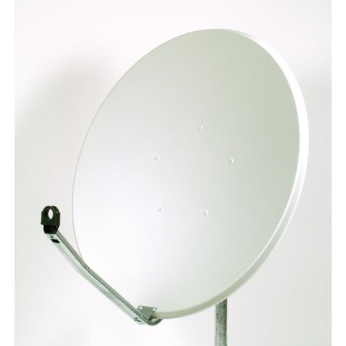 Weiße Satelliten-Parabolantenne mit einem Durchmesser von 100 Zentimetern und einem galvanisiert und pulverbeschichtetem Reflektor aus Aluminium.. stabiler Tragarm mit Feedhalterung. Antennenrücken in Spiegelfarbe pulverbeschichtet. El-/Az-Masthalterung feuerverzinkt. U-Bügel aus Edelstahl. montagefreundlich