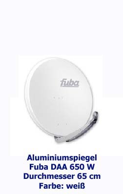 Sat Anlage Sat Antenne FUBA: Diese Aluminium-Parabolantennen haben einen Durchmesser von 65 Zentimetern.Masthalterung und Rückenteil sind bereits werkseitig vormontiert. Dies garantiert eine extrem einfache und schnelle Installation.