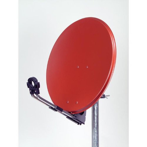 Ziegelrote Satelliten-Parabolantenne der Spitzenklasse mit einem Durchmesser von 60 Zentimetern und einem galvanisiert und pulverbeschichtetem Reflektor aus Aluminium.. stabiler Doppeltragarm mit Feedhalterung . Antennenrücken in Spiegelfarbe pulverbeschichtet . El-/Az-Masthalterung feuerverzinkt . U-Bügel aus Edelstahl . montagefreundlich