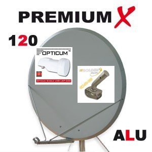 PremiumX 120cm Alu Sat Schüssel Spiegel Hellgrau + DiseqC-Motor Golden Media GM 50-120 + LNB Single Opticum 0,1dB FullHD HDTV 3D