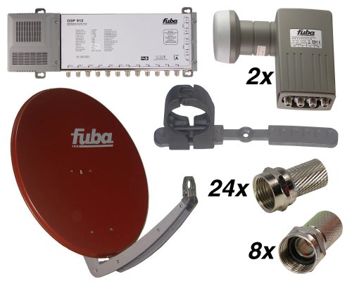Sat-Anlage für 12 Teilnehmer & 2 Satelliten FUBA DAA 850, Ziegelrot, FUBA LNB, Multischalter & Multifeedhalter