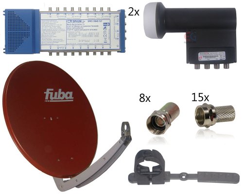 Sat-Anlage für 4 Teilnehmer & 2 Satelliten FUBA DAA 850, Ziegelrot, Inverto LNB, Spaun Multischalter, FUBA Multifeedhalter