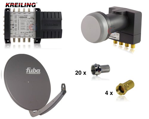 Sat-Anlage für 8 Teilnehmer, FUBA DAA 850 Anthrazit, Kreiling LNB und Multischalter