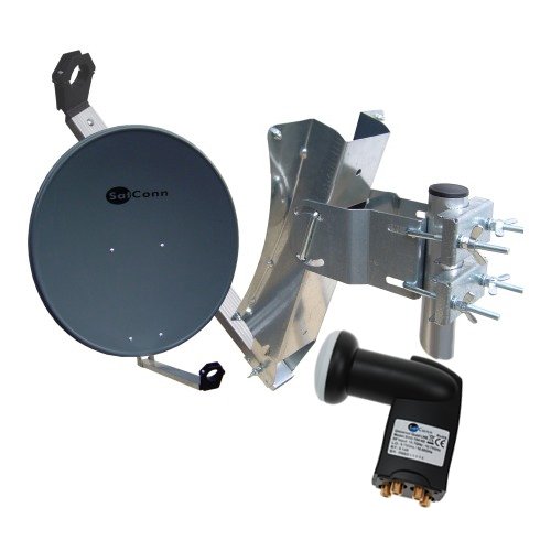 SatConn Spiegel 85cm Alu anthrazit + Quad LNB 0,1dB HDTV schwarz
