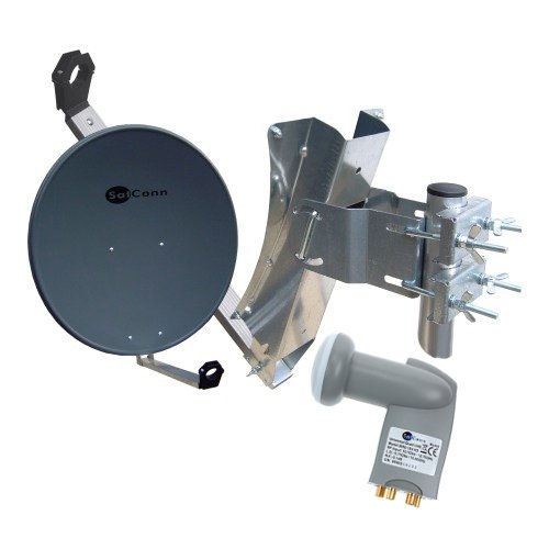 SatConn Spiegel 85cm Alu anthrazit + Quad LNB 0,1dB HDTV grau